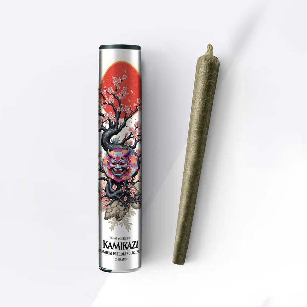 Kamikazi crafts premium cannabis prerolls using only the finest AAA and AAA+ grade BC-grown flower, never trim or shake. With two size options available, customers can easily choose the experience that best fits their needs.